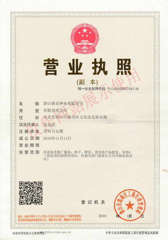 唐山荷花種業(yè)有限公司始創(chuàng)于1984年,一直秉承“科技為先,誠(chéng)信為本”的發(fā)展指導(dǎo)戰(zhàn)略,注冊(cè)商標(biāo)“荷花”牌,經(jīng)過三十多年的發(fā)展,建立了從親本選育、試驗(yàn)示范、生產(chǎn)檢驗(yàn)、精選加工、推廣銷售及農(nóng)業(yè)技術(shù)咨詢一體化的經(jīng)營(yíng)體系,目前擁有試驗(yàn)基地、繁育基地、制種基地、及規(guī)模化種子冷貯藏庫(kù),完善了由科研、檢驗(yàn)、生產(chǎn)、銷售各個(gè)配套環(huán)節(jié)。荷花牌系列種子正是我們?cè)趫?jiān)持“誠(chéng)信、品質(zhì)、開拓、創(chuàng)新”的企業(yè)精神下打造的種子品牌,如今,在全國(guó)已形成強(qiáng)勢(shì)品牌效應(yīng),是一個(gè)值得信賴與具有一定影響力的種子品牌,在全國(guó)廣大用戶中贏得了良好的口碑和信譽(yù)... ...